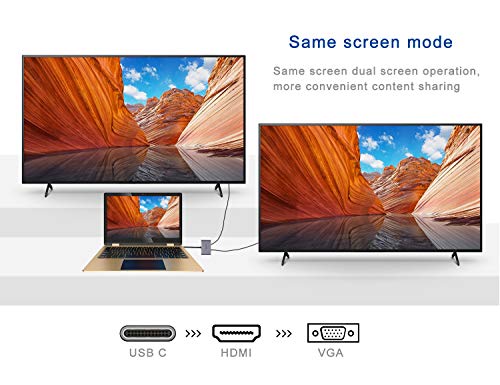 【Uscita 4K HDMI e 1080P VGA】 Convertitore multiporta 2-in-1 da USB C a HDMI VGA Comodo per collegare laptop di tipo C a display e proiettore esterni. L'uscita VGA supporta l'uscita Full HD 1920x1080P a 60Hz. HDMI supporta un'uscita ultra chiara 4K * 2K a 30Hz. Nota: modalit¨¤ estesa, mentre vga e hdmi funzionano contemporaneamente, due monitor mostrano solo lo stesso contenuto.