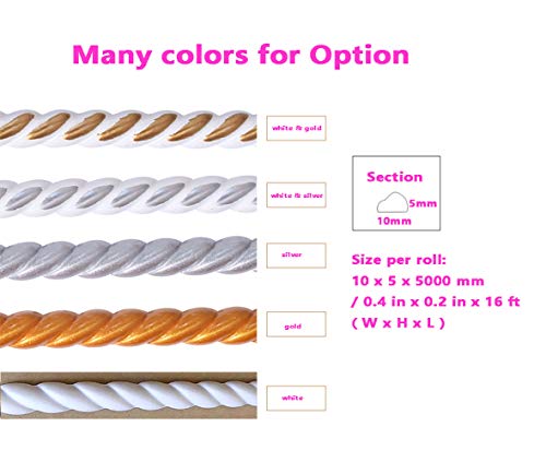 DURABLE AND FLEXIBLE ROPE MOLDING - 1/5inch(thickness) x 2/5inch(width) x 16feet(length) flexible trim moulding, made of high quality PVC material (thicker and denser than other wallpaper border).