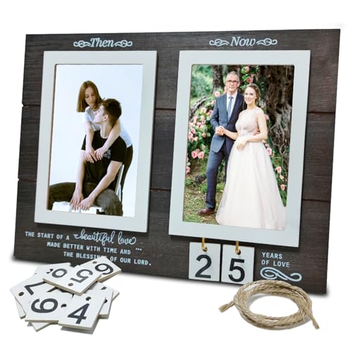 Design Unico: Il nostro design della Then & Now cornice fotografica è unico e può aiutare le coppie a catturare i loro dolci ricordi. Questa cornice squisita mostra foto affiancate del tuo passato e presente, collocazione con una scheda digitale 0-9 per commemorare il tuo dolce tempo insieme. Il tuo amante sarà immerso in fiabe come sogni e ricorderà la felicità che avete vissuto insieme.