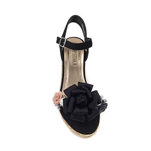 IVACHY Sandali estivi da donna con zeppa e plateau con decorazione di perle, Nero, 36 EU