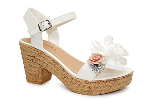 IVACHY Sandali estivi da donna con zeppa e plateau con decorazione di perle, bianco, 36 EU