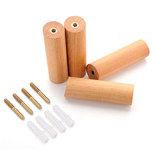 IVAILEX Set di 4 Naturale di Legno A Parete Montato Ganci, Legno Appendiabiti da Parete Cappello Bagno Spogliatoio Camera da Letto Cucina Legno di Faggio 10CM