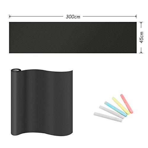 Ivencase 45 x 300cm Carta Lavagna Adesiva Rimovibile, Memo da Parete Penne Gesso o Marcatori Gesso - Riutilizzabili Adesivo Sticker per Scuola, Ufficio, Casa, Bar (Nero)