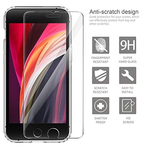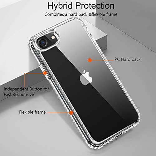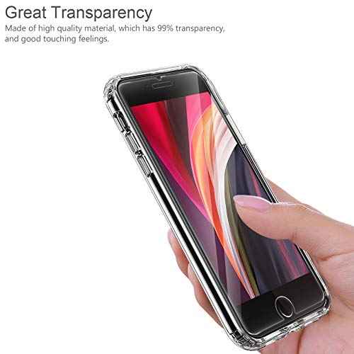 Ivencase Cover Ultra Hybrid Compatibile con iPhone SE 2020/iPhone 7/iPhone 8 con 2 Pezzi Vetro Temperato, Anti-Ingiallimento Hard PC Retro, Paraurti Flessibile Cover Antiurto - Trasparente