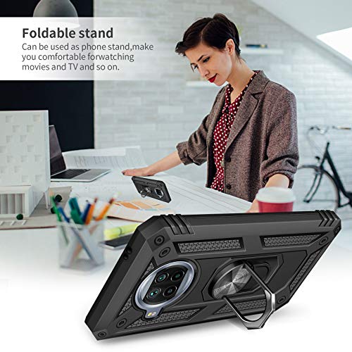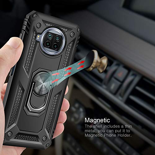 Ivencase Cover per Xiaomi Mi 10T Lite 5G + [2 Pezzi] Vetro Temperato, 360°Girevole Ring Supporto Dual Layer TPU + PC Bumper Silicone Case Custodia per Xiaomi Mi 10T Lite 5G Nero