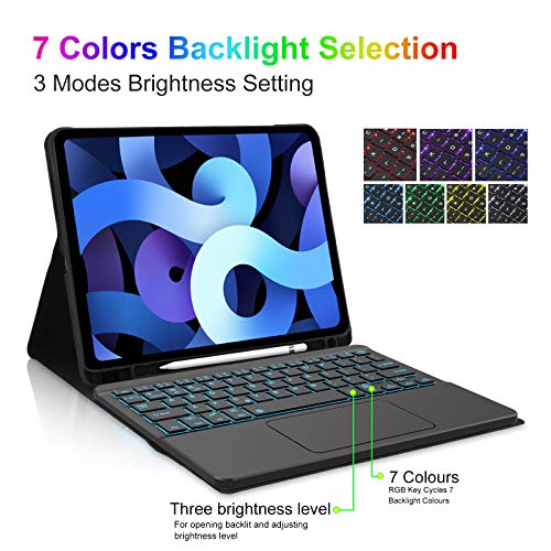 IVEOPPE Custodia per Tastiera per iPad Air 4th Gen 2020, Custodia Magnetica per Tastiera Italiana Staccabile Bluetooth Retroilluminata Touchpad per iPad Air 10.9/iPad Pro 11 2020/2018 (Nero)