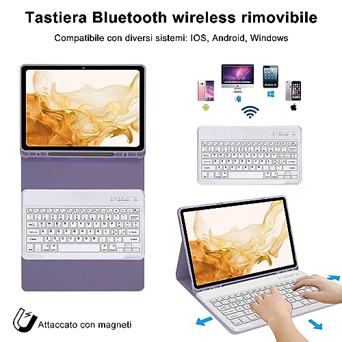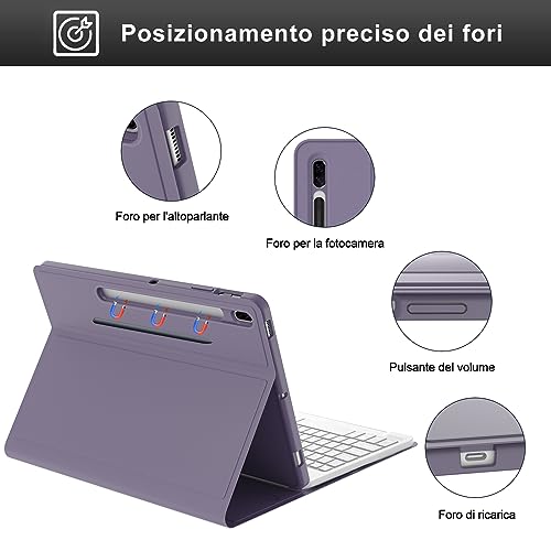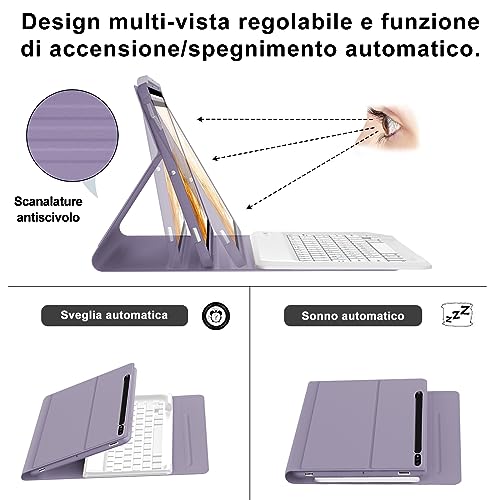 IVEOPPE Custodia con Tastiera per Samsung Galaxy Tab S7 FE/S8+/S7 Plus 12.4 Cover con S Porta Penna, Italiana Tastiera (Layout é.ç.§ QWERTY) Compatibile SM-X800/X806/T970/T975/T730/T736B,Viola