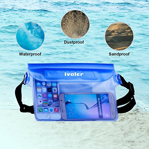 IVoler Borsa Impermeabile Custodia Impermeabile con Cintura Vita per Cellulari, Fotocamera, Contanti, Portafoglio, Passaporto, Sacca Impermeabile Marsupio per Sport Pesca Vela Escursione (Blu)