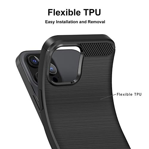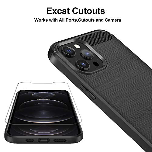 IVoler Cover per iPhone 12 PRO e iPhone 12 6.1 Pollici con 3 Pezzi Pellicola Vetro Temperato, Fibra di Carbonio Nero Custodia in Morbida Silicone TPU Anti-Graffio Antiurto Protettiva Case
