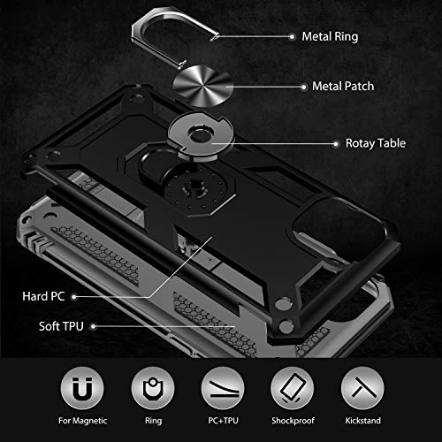 IVoler Cover per iPhone 12 e iPhone 12 PRO 6.1 Pollici con 3 Pezzi Pellicola Vetro Temperato, Grado Militare Custodia Protezione con Anello Ruotabile Cavalletto, Antiurto TPU Bumper Case - Nero