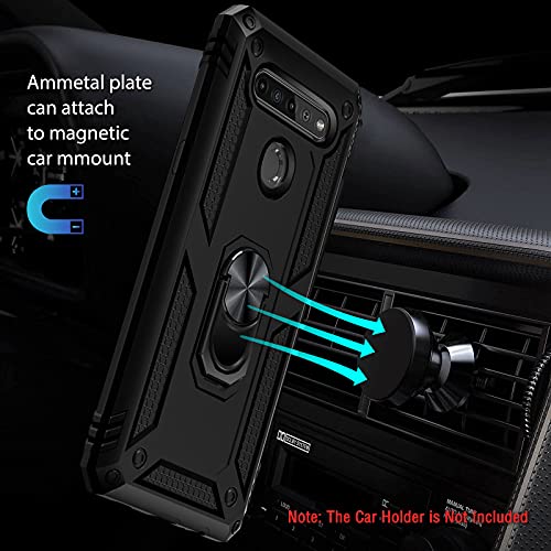 IVoler Cover per LG K51S con 3 Pezzi Pellicola Vetro Temperato, Grado Militare Custodia Protezione con Anello Ruotabile Cavalletto, Antiurto TPU Bumper Case - Nero