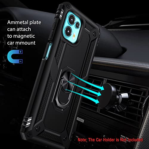 IVoler Cover per Motorola Moto Edge 20 Lite con 3 Pezzi Pellicola Vetro Temperato, Grado Militare Custodia Protezione con Anello Ruotabile Cavalletto, Antiurto TPU Bumper Case - Nero