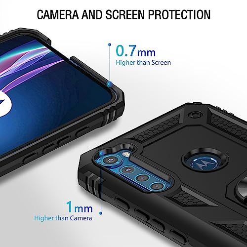 IVoler Cover per Motorola Moto One Fusion Plus con 3 Pezzi Pellicola Vetro Temperato, Grado Militare Custodia Protezione con Anello Ruotabile Cavalletto, Antiurto TPU Bumper Case - Nero