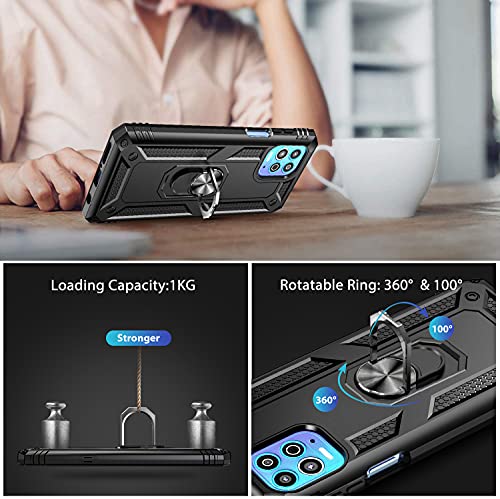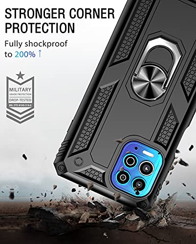 IVoler Cover per Motorola Moto G100 con 3 Pezzi Pellicola Vetro Temperato, Grado Militare Custodia Protezione con Anello Ruotabile Cavalletto, Antiurto TPU Bumper Case - Nero