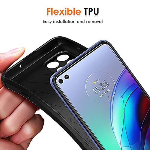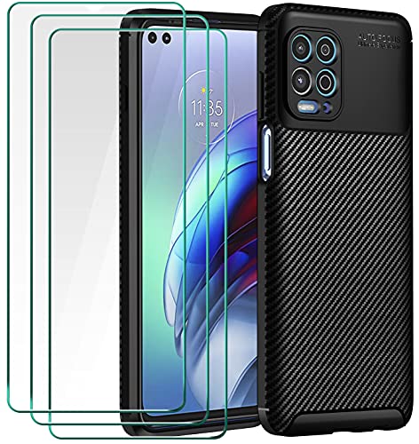 IVoler Cover per Motorola Moto G100, con 3 Pezzi Pellicola Vetro Temperato, Fibra di Carbonio Custodia in Morbida Silicone TPU Anti-Graffio Antiurto Protettiva Case - Nero