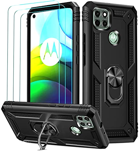 IVoler Cover per Motorola Moto G9 Power con 3 Pezzi Pellicola Vetro Temperato, Grado Militare Custodia Protezione con Anello Ruotabile Cavalletto, Antiurto TPU Bumper Case - Nero