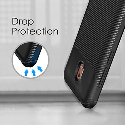 IVoler Cover per Nokia 2.1, con 3 Pezzi Pellicola Vetro Temperato, Fibra di Carbonio Custodia in Morbida Silicone TPU Anti-Graffio Antiurto Protettiva Case - Nero