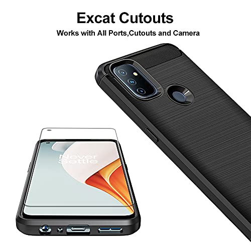 IVoler Cover per OnePlus Nord N100 con 3 Pezzi Pellicola Vetro Temperato, Fibra di Carbonio Nero Custodia in Morbida Silicone TPU Anti-Graffio Antiurto Protettiva Case