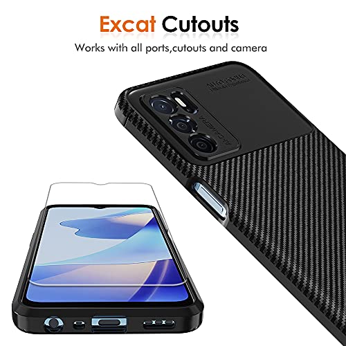 IVoler Cover per Oppo A16 / Oppo A16s / Oppo A54s, con 3 Pezzi Pellicola Vetro Temperato, Fibra di Carbonio Custodia in Morbida Silicone TPU Anti-Graffio Antiurto Protettiva Case - Nero