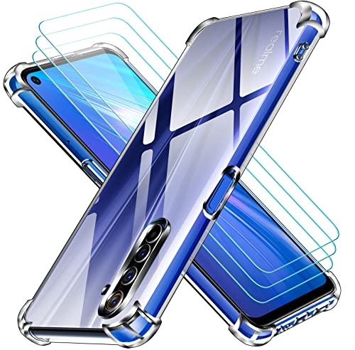 IVoler Cover per Realme 6S / Realme 6, Antiurto Custodia con Paraurti in TPU Morbido e 3 Pezzi Pellicola Vetro Temperato, Ultra Sottile Trasparente Silicone Protettiva Case