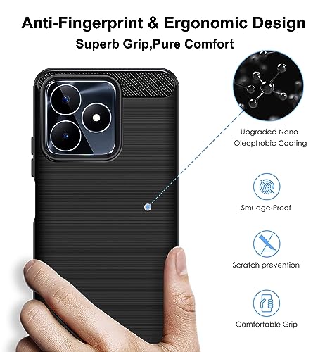 IVoler Cover per Realme C53 / Realme C51 con 2 Pezzi Pellicola Vetro Temperato, Fibra di Carbonio Nero Custodia in Morbida Silicone TPU Anti-Graffio Antiurto Protettiva Case