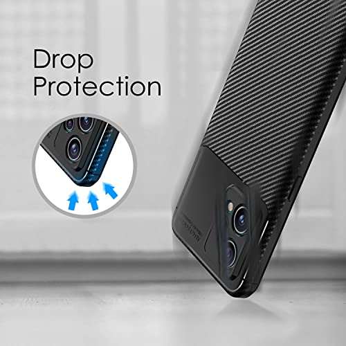 IVoler Cover per Realme 9 PRO+ / Realme 9 PRO Plus/Realme 9 4G, con 3 Pezzi Pellicola Vetro Temperato, Fibra di Carbonio Custodia in Morbida Silicone TPU Anti-Graffio Antiurto Protettiva Case - Nero