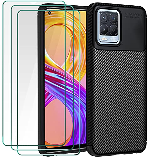 IVoler Cover per Realme 8 PRO/Realme 8 4G, con 3 Pezzi Pellicola Vetro Temperato, Fibra di Carbonio Custodia in Morbida Silicone TPU Anti-Graffio Antiurto Protettiva Case - Nero