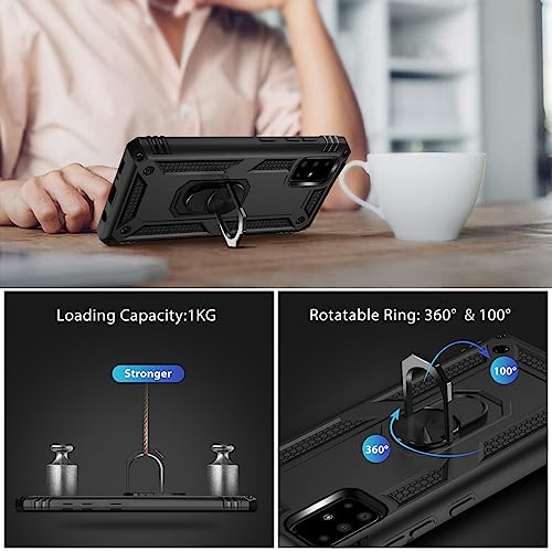 IVoler Cover per Samsung Galaxy A51 con 3 Pezzi Pellicola Vetro Temperato, Grado Militare Custodia Protezione con Anello Ruotabile Cavalletto, Antiurto TPU Bumper Case - Nero