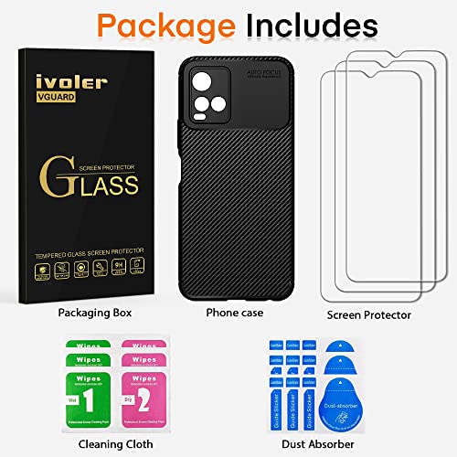 IVoler Cover per Vivo Y21 / Vivo Y21s / Vivo Y33s, con 3 Pezzi Pellicola Vetro Temperato, Fibra di Carbonio Custodia in Morbida Silicone TPU Anti-Graffio Antiurto Protettiva Case - Nero