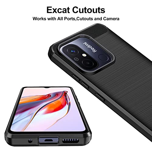 IVoler Cover per Xiaomi Redmi 12C / Xiaomi Redmi 11A con 2 Pezzi Pellicola Vetro Temperato, Fibra di Carbonio Nero Custodia in Morbida Silicone TPU Anti-Graffio Antiurto Protettiva Case