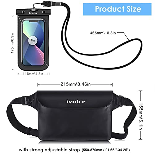 IVoler Kit Impermeabile con Borsa Impermeabile Sacca Impermeabile Marsupio e Custodia Impermeabile Smartphone per Sport Pesca Vela Escursione, Proteggere Il Tuo Cellulare, Portafoglio, ECC