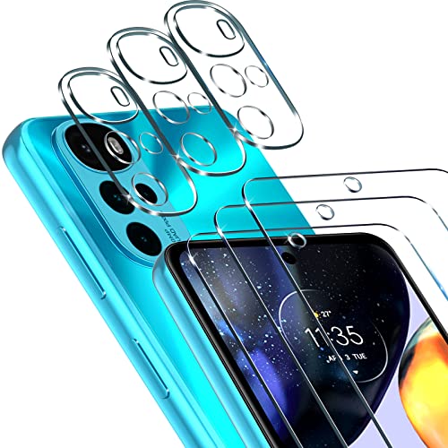 Nota: Progettato specificamente compatibile con Motorola Moto G22. 3 pezzi pellicola vetro temperato e 3 Pezzi pellicola fotocamera incluso.