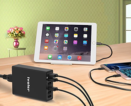 IVoler 60W 6 Porte Quick Charge 3.0 Tipo C Caricabatterie USB da Muro,Stazione di Ricarica con 6 Porte USB (2 Porte Quick Charge 3.0 & 4 Porte 5V / 2,4A) per iPhone Samsung Galaxy LG (1m) (Nero)