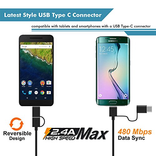 Cavo 2 in 1 Tipo C e Micro USB Cavo Ricarica: iVoler 2 in 1 Cavo Tipo C, da Type C / micro USB a USB 2.0 Tipo Standard A cavo dati per entrambi i dispositivi supportati Tipo C e dispositivi micro USB supportati: Samsung Galaxy S8 / S8 +/ S7 / S6 / Edge / Plus,Asus Zenfone 2,HTC One A9 / M9, Nexus 6, Nuovo Apple MacBook 12'', Asus Zenfone 3, LG G5,HTC 10, OnePlus 3 / 2, Lumia 950, Lumia 950 XL, Nokia N1, Chromebook Google Pixel, Samsung, HTC, Motorola, Android etc.