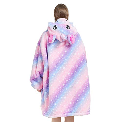 IvyH Coperta Oversize con Cappuccio, Coperta Sherpa Indossabile Coperta Invernale Calda e Accogliente per TV con Felpa con Cappuccio Unicorno Carino per Ragazze Donne Adolescenti Adulti