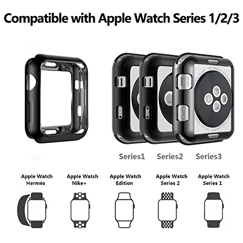IvyLife Cover Apple Watch 42mm - Custodia per iWatch Serie 3/2 / 1 Hermès Edition Nike Cinturino Screen Protector Case Protettiva Ultra Sottile Morbido TPU Nero
