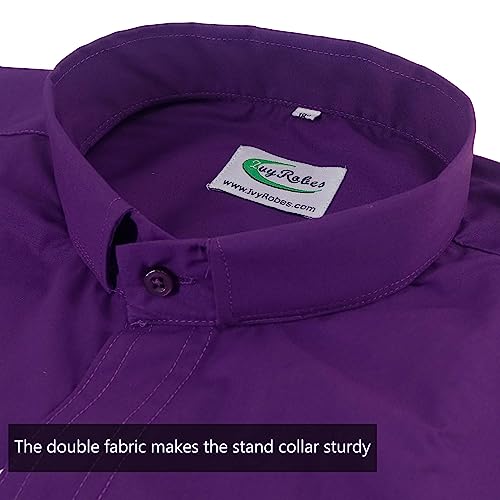IvyRobes Camicia Prete a Maniche Corte da Uomo Clergyman con Colletto Sacerdote per Unisex Viola