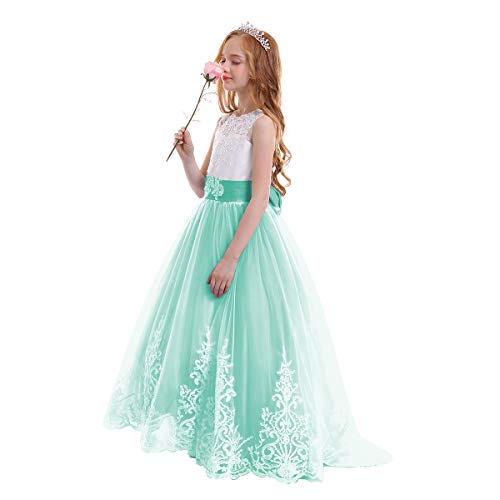 IWEMEK Abito da Ragazze di Fiore Applique di Pizzo Abiti da Sera Matrimonio Damigella d'Onore Lungo Tulle Vestito Festa Comunione Compleanno Carnevale Partito Fotografia Principessa Vestito