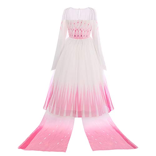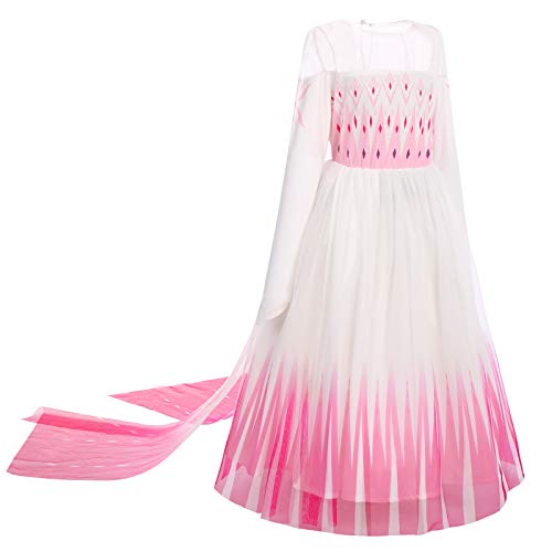 IWEMEK Ragazze Elsa Vestito Principessa Costume da Carnevale del Ghiaccio Regina delle Nevi Abito da Halloween festa Natale Compleanno Cosplay Party Fancy Dress Up F - Rosa Caldo 5-6 Anni