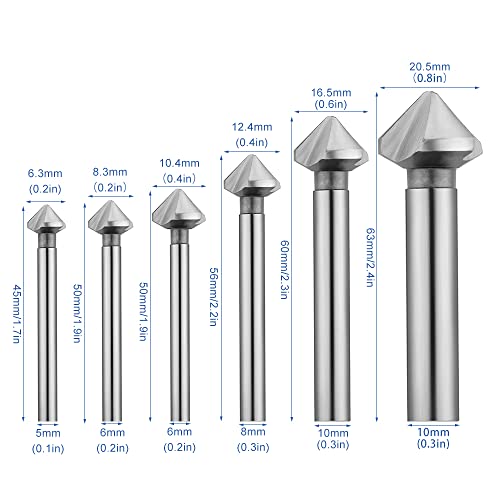 IWILCS Assortimento Svasatori 90°,Set Svasatori Per Metallo Punta Svasatore Conico 90°,Punte per svasatura svasatore conico acciaio HSS titanio,6 pezzi, Ø 6.3-20.5 mm,DIN 335-C, in scatola di metallo