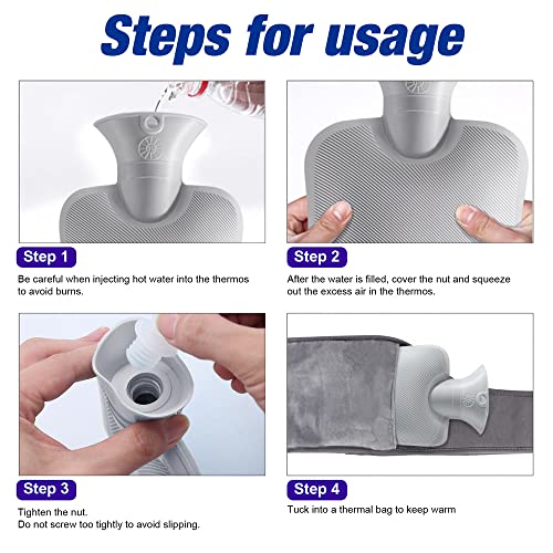 [Ugello per Bottiglia Largo] - Viene fornito con un tappo antispruzzo, sicuro e facile da far entrare e uscire dallacqua, impedisce allacqua di schizzare di nuovo. Le nostre borse dellacqua calda hanno una capacità massima di 1000 ml. Si consiglia di riempirlo fino a due terzi (nota: per una maggiore sicurezza, la temperatura dellacqua calda non deve superare gli 80 gradi Celsius).