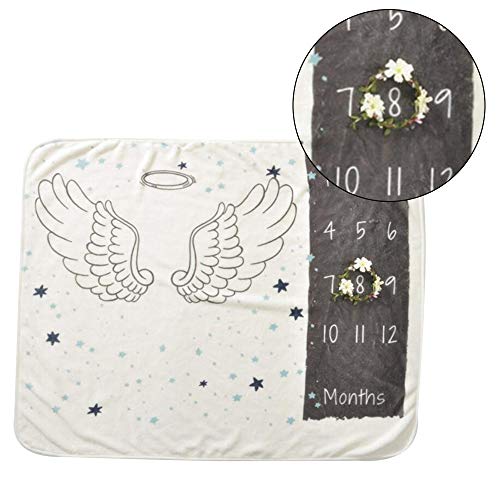 IWILCS Coperta per neonato mese, Coperta per foto per neonati, Puntello per sfondo fotografico, Coperte per età da bambino, Flanella, per ragazzi e ragazze, con piccola corona (70 * 102 cm) (Angelo)