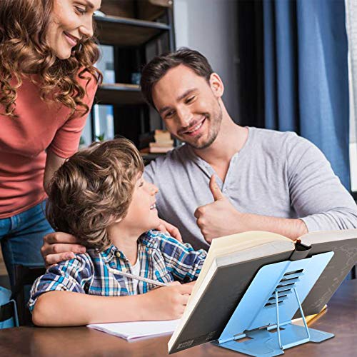 IWILCS Leggio in Metallo per Libro, Leggio Libri Regolabile, Multifunzione Leggio Libri, Altezze Regolabile, per Libri, Cellulare, cuochi Ricette, Porta Copia, iPad, Tablet, Casa, Ufficio(Blu)