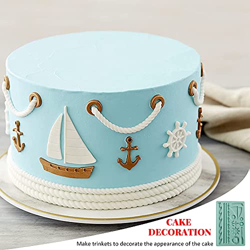 IWILCS Stampo in Silicone per Decorazioni Torte e Cioccolatini, Fondant Mold, Fondant Silicone Mold per Decorare Torte, Mousse, Cioccolato, Caramelle, Barca a vela, Timone, Ancora, 20 x 12,9 x 0,6cm