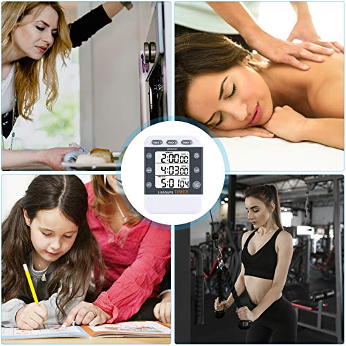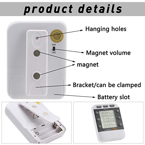 [Ampia applicazione]: sarà un buon amico per il vostro studio, un buon assistente per cucinare e un buon partner per il fitness. Il timer digitale a 3 scomparti è perfetto per cucinare, grigliare, cuocere, alzarsi, allenarsi in palestra, sport, compiti, esami, attività per bambini e riunioni.