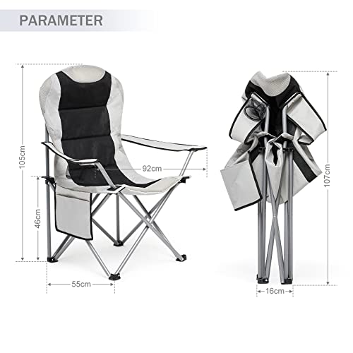 【Grande e Comodo】Tessuto Oxford più cuscino di seduta in cotone è morbido e comodo. Questo prodotto è una combinazione di due articoli per soddisfare le esigenze Sue e della Sua famiglia all'aperto. La dimensione aperta della sedia da campeggio è 92 * 55 * 105 cm (L * P * A) e il suo peso è solo 2,9 kg