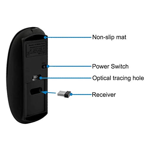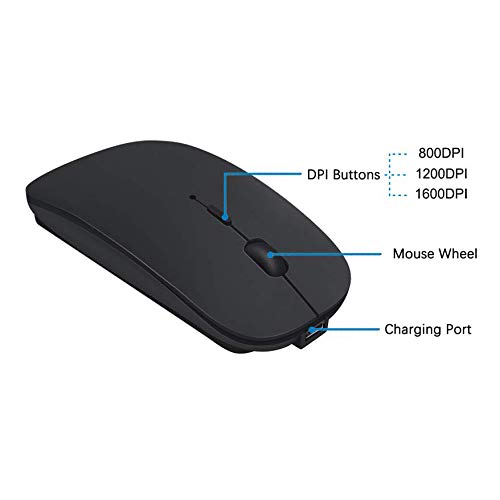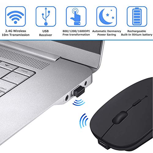 Iwobi Mouse Wireless Ricaricabile,Mouse Senza Fili Laptop Mouse 2.4 G 2400 DPI Mouse Ottico Silenzioso,Business Office Home,Nero