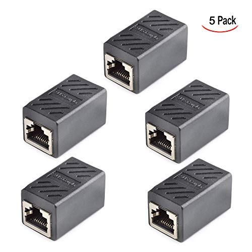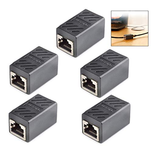 Iwobi 5 pezzi Accoppiatore RJ45 Connettore Cavo di Rete,Cavo Ethernet a Femmina per Cat5e/Cat6/Cat7,Nero