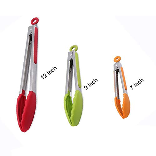 Iwobi 3 pezzi Pinze da Cucina,Pinza per Griglia in Acciaio Inossidabile con Punte di Bloccaggio e Punte in Silicone,per Barbecue, Insalata, Bistecca.