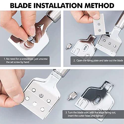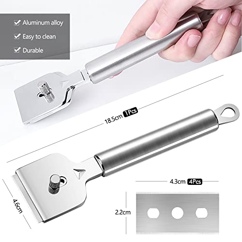 IYInJuan Raschietto per Vetro, Ceramica Raschietto in Acciaio Inossidabile, con 4 Lame di Ricambio, Vetroceramica Raschietto per la Pulizia Piastrelle Vetro Pavimenti Macch